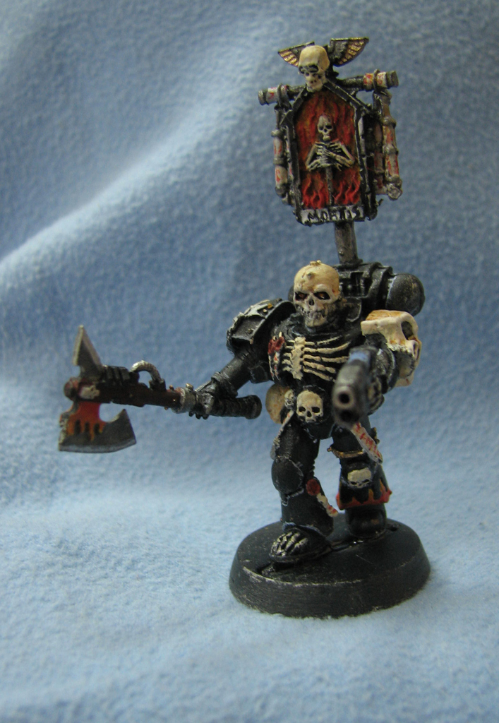 Так началась бесконечная война Легиона Проклятых! Десантники удалили все знаки отличия с их силовых доспехов. Вместо этого их броня теперь была черна, декорирована каждым братом по собственному выбору эмблемами смерти. Большинство братьев использовало сходную тему – скелеты, кости и черепа, корчащиеся в огне чистилища.